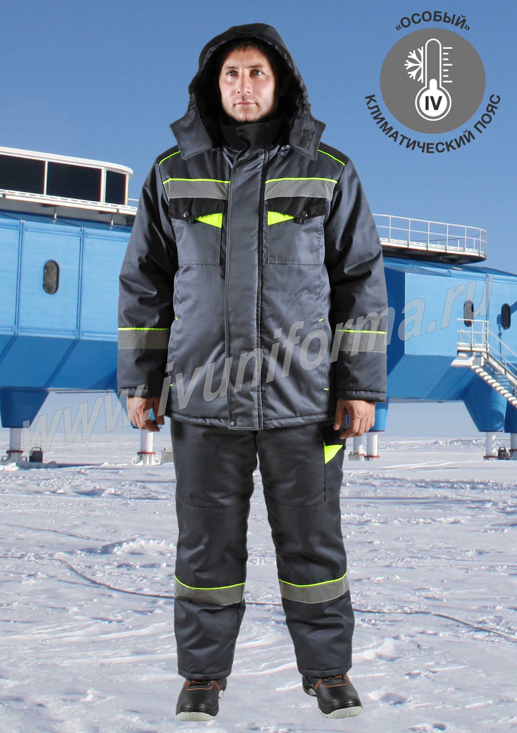 Полотно высокоизвилистое, силиконизированное «Аляска» - плотность150 гр/кв.м. Куртка: 450 гр/кв.м (3 слоя корпус, 2 слоя рукава). Брюки: 300 гр/кв.м (2 слоя)